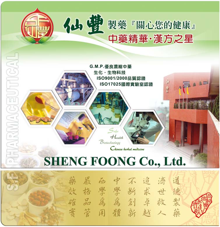 109.12.15 有關市售丸劑聲明公告:近來有消費者市售詢問本公司下列圖示產品是否為本公司製造,其標示文字有Jiang Ya Wan Sheng Foong Pills(HT-23) / Manufactory:Sheng Foong GMP Herbal Company Products of Taiwan等。本公司特此聲明,圖示中之丸劑產品並非由本公司製造,本公司並不知悉其由來,亦絕對不會為此產品負任何製造商責件,敬請消費者留意! 102.05.28 本公司未使用化製澱粉(修飾澱粉),產品未含順丁烯二酸。全國公證檢驗《澱粉檢驗報告》。 ★★本公司產品,保證不含馬兜鈴之非法藥材及不摻雜任何西藥,請消費者安心服用! |